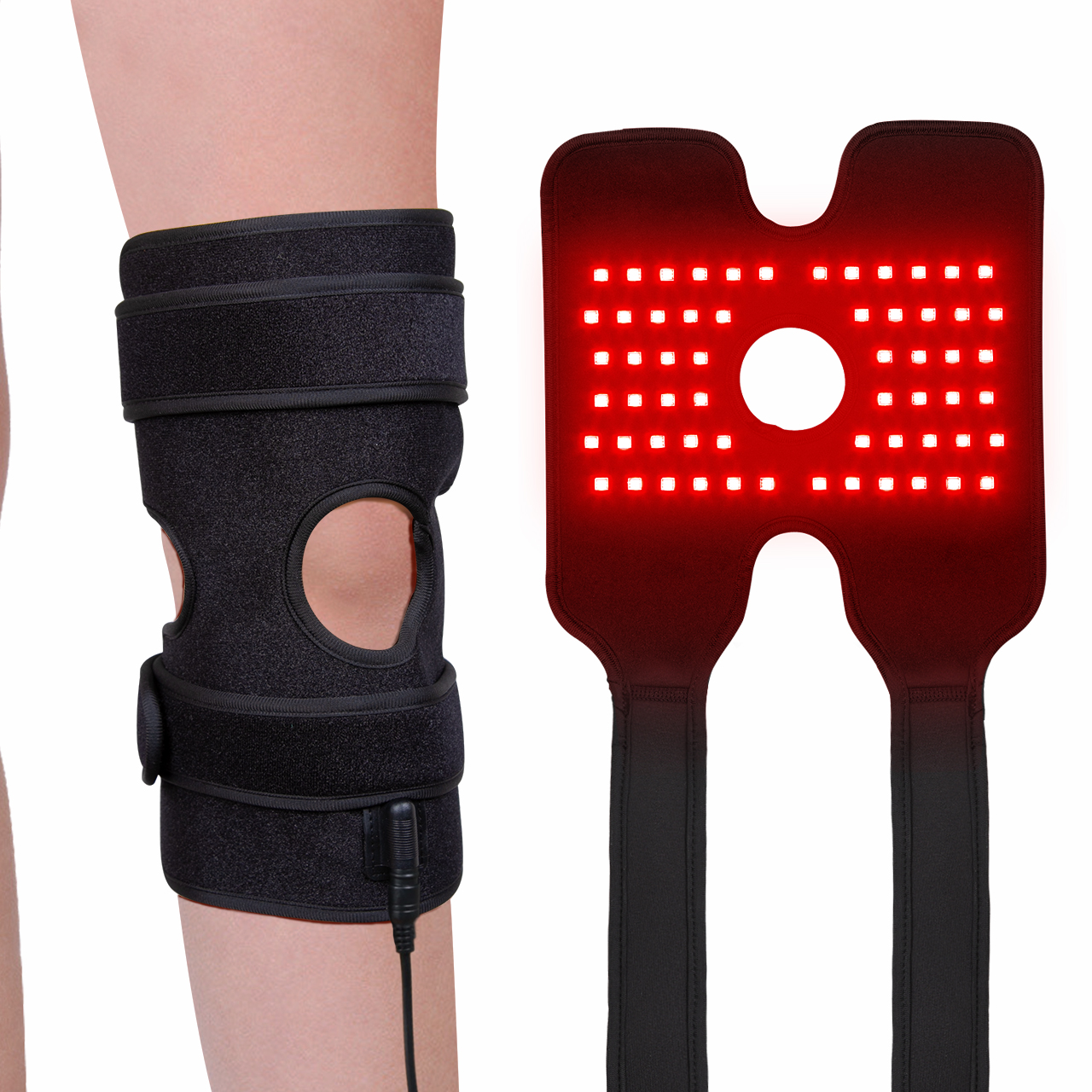 Soft SBR pad and adjustable support wrap around the target area for hands-free and focused treatment in the office or at home