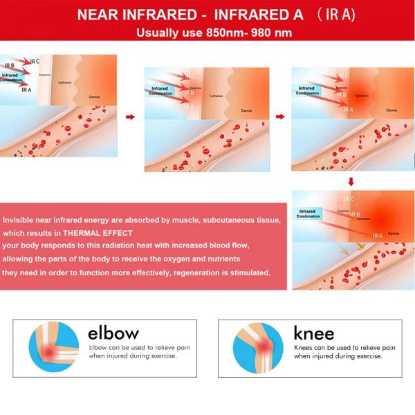 The combination of red and infrared light increase blood circulation by THERMAL EFFECT, allowing the parts of the body to receive the oxygen and nutrients they need and enhance metabolism, providing pain relief of aseptic inflammation or reduce inflammation during sprain & swell recovery period. This medical-grade device safely relieves pain associated with many physical ailments.