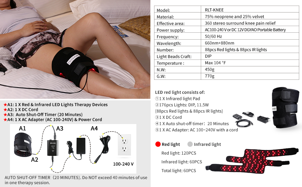 - 176 pcs medical LED lights. Visible 88 red light (660 nm ), 88 invisible infrared lights(880 nm)