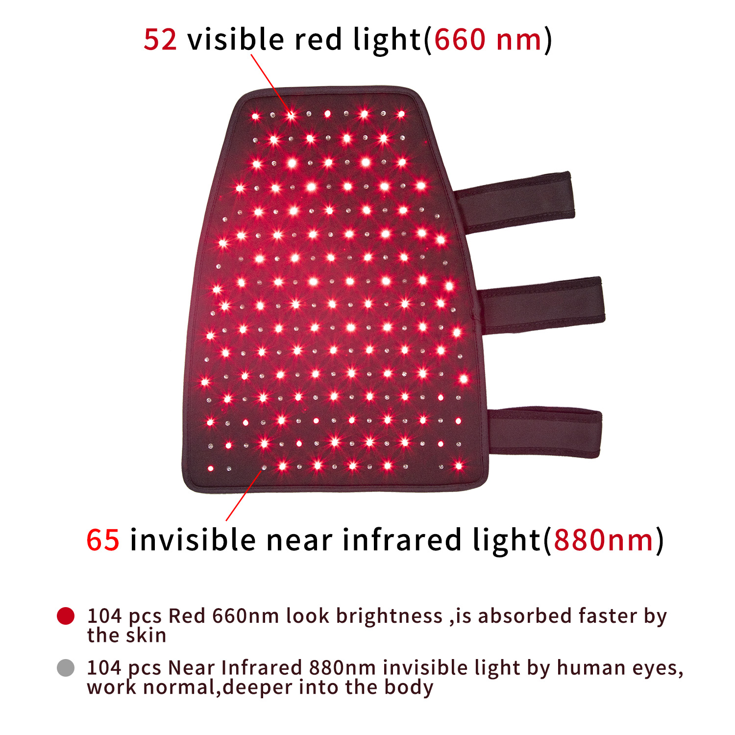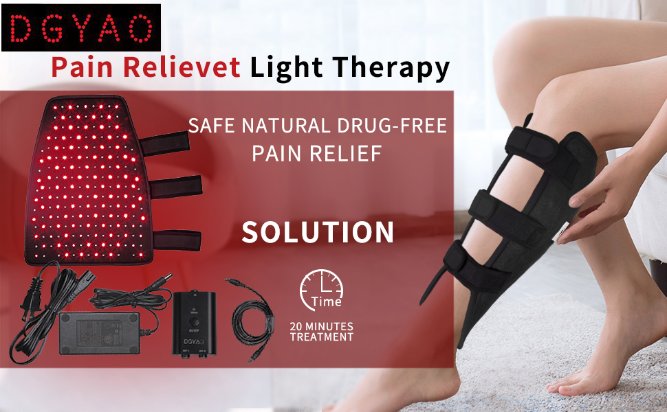 DGYAO adopts 104pcs 880 nm infrared led lights (invisible to naked light) and 104pcs 660 nm red led lights. The combination of red and infrared light increase blood circulation by thermal effect to provide pain relief.