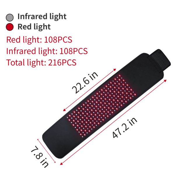 • 12” x 6” Large treatment area & Powerful 9W led lights – Making treatment time dramatically shorter & total 117 pcs medical red and deep penetrating infrared lights, penetrate deeply in the tissues. The infrared light therapy system is wearable and consists of a 13.8″ x 8″ x 0.6″ flexible pad embedded with an alternating array of 52 red light (660 nm ) and 65 invisible infrared lights(880 nm).