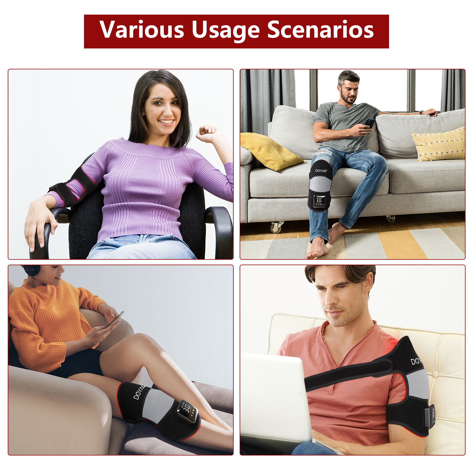 Come with a soft SBR brace around the target area and secure it with the adjustable Velcro straps for hands-free and focused treatment in the office or at home use